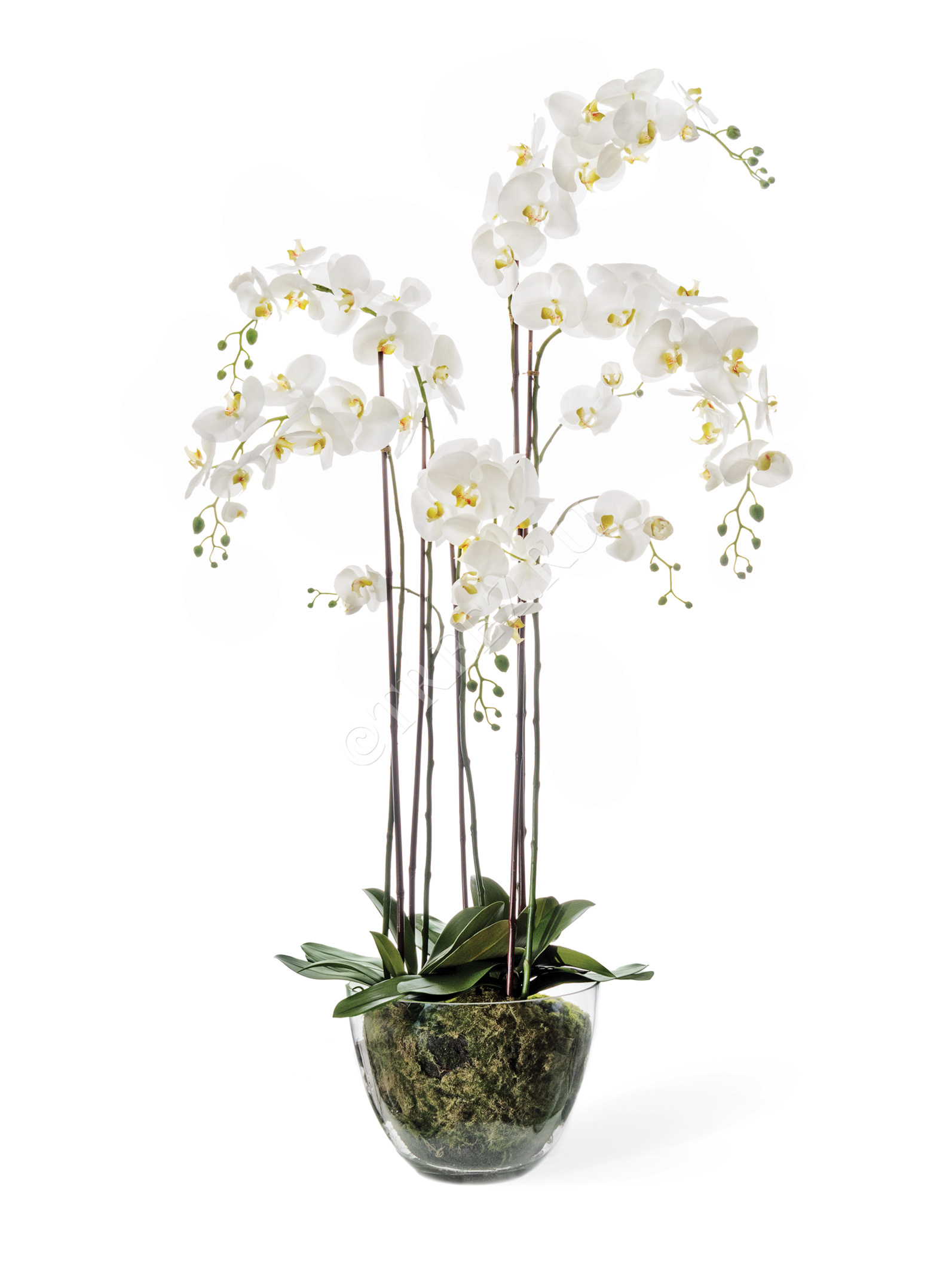 Орхидея Фаленопсис белая с мхом, корнями, землёй