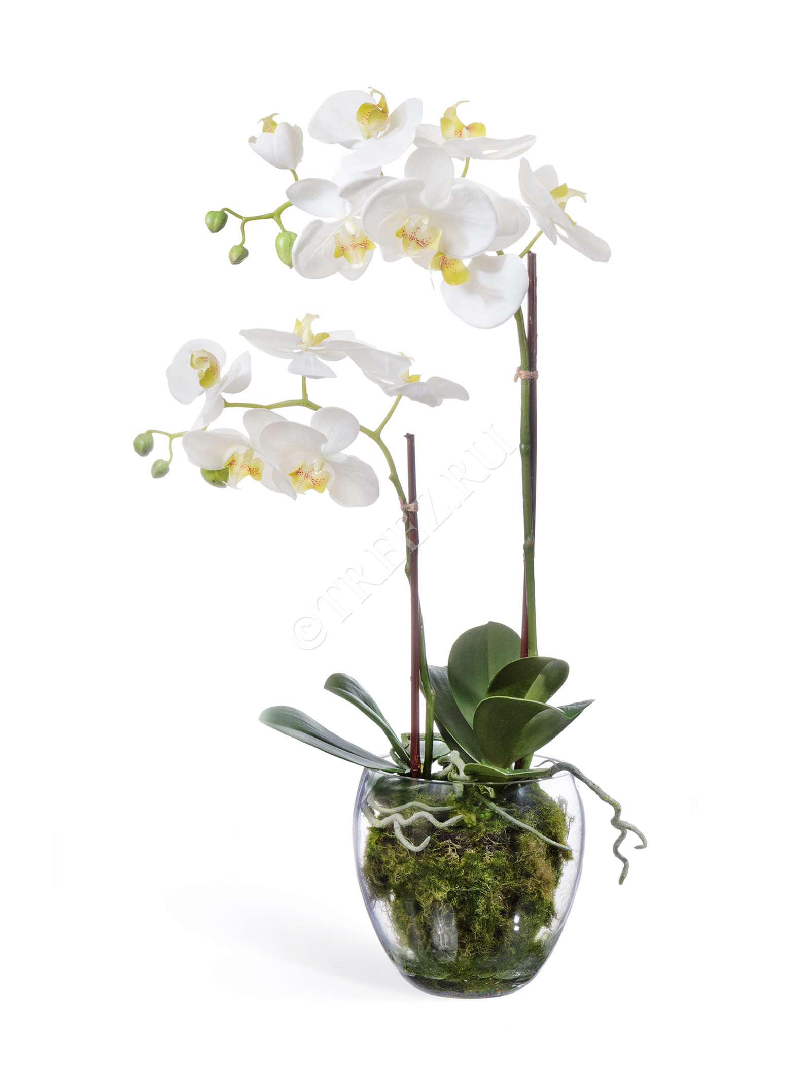 Орхидея Фаленопсис белая с мхом, корнями, землёй