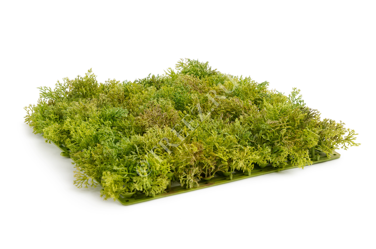 Полная имитация мха Ягель, вплоть до ощущений. Мягкий, долговечный, изготовлен из высококачественного пластика, что позволяет ему служить много лет без каких-то изменений цвета и фактуры.