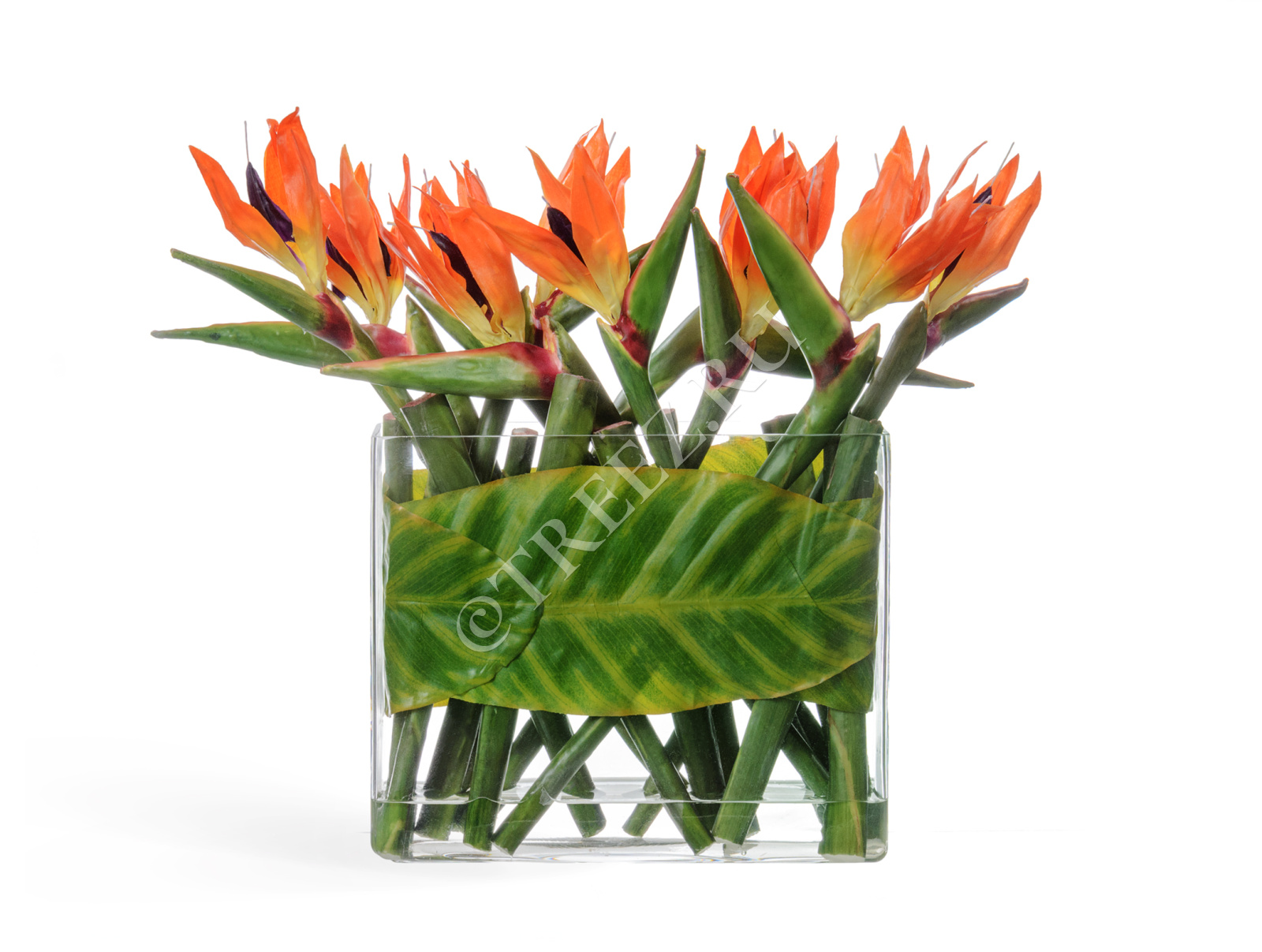 Поставляются готовыми в стеклянной вазе с гелем имитирующим воду. Ваза - длина 30 см, высота - 25 см, ширина - 8 см.