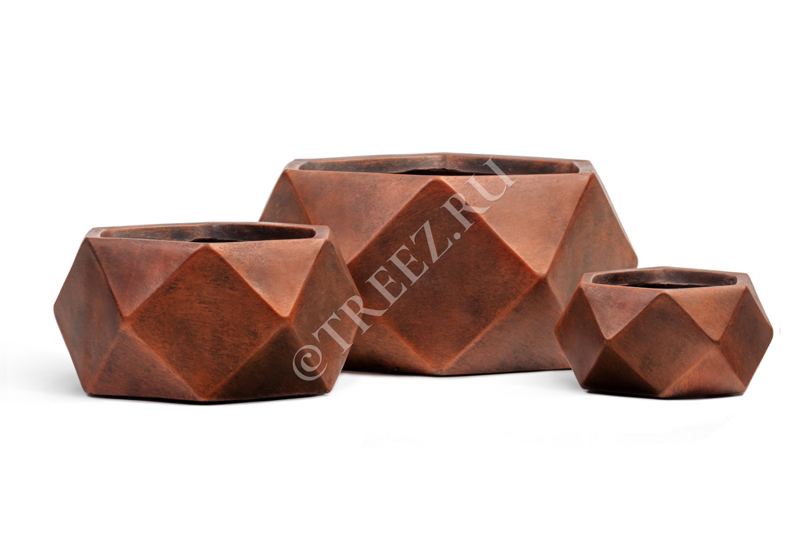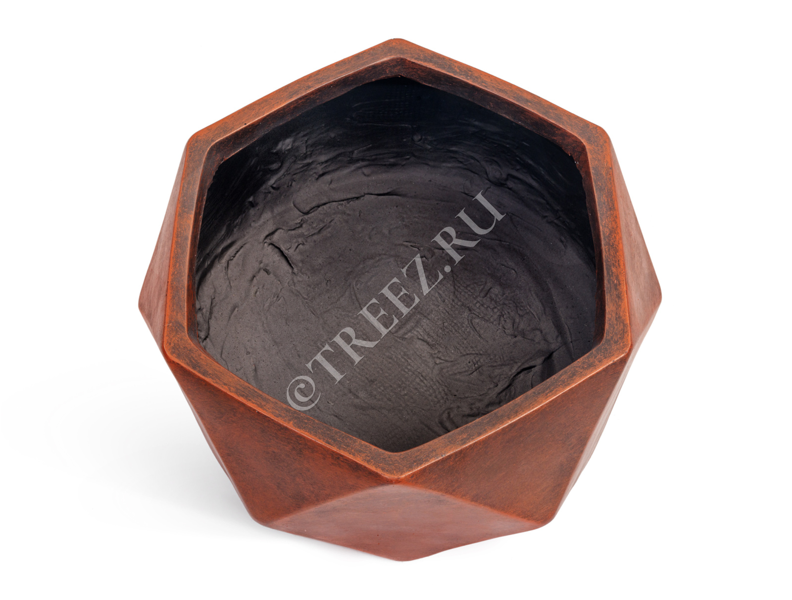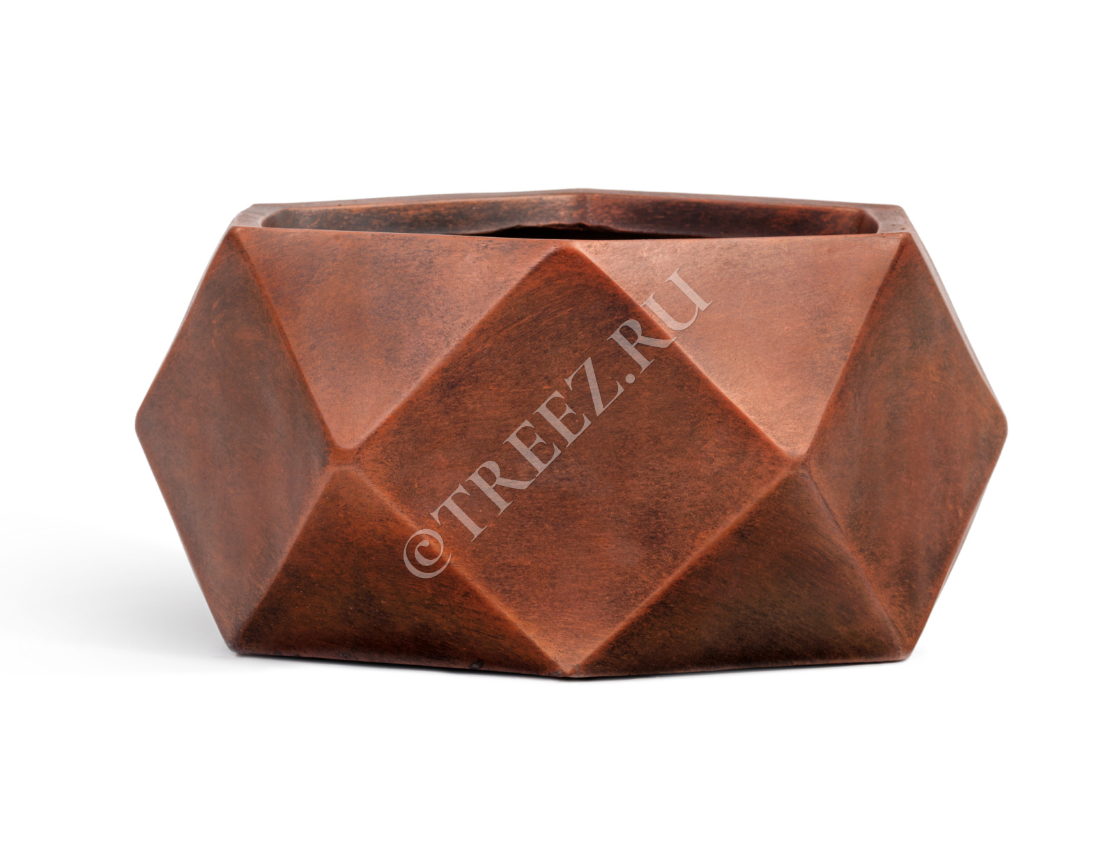 Кашпо TREEZ ERGO - Rombo - Низкая чаша-многогранник - Состаренная медь