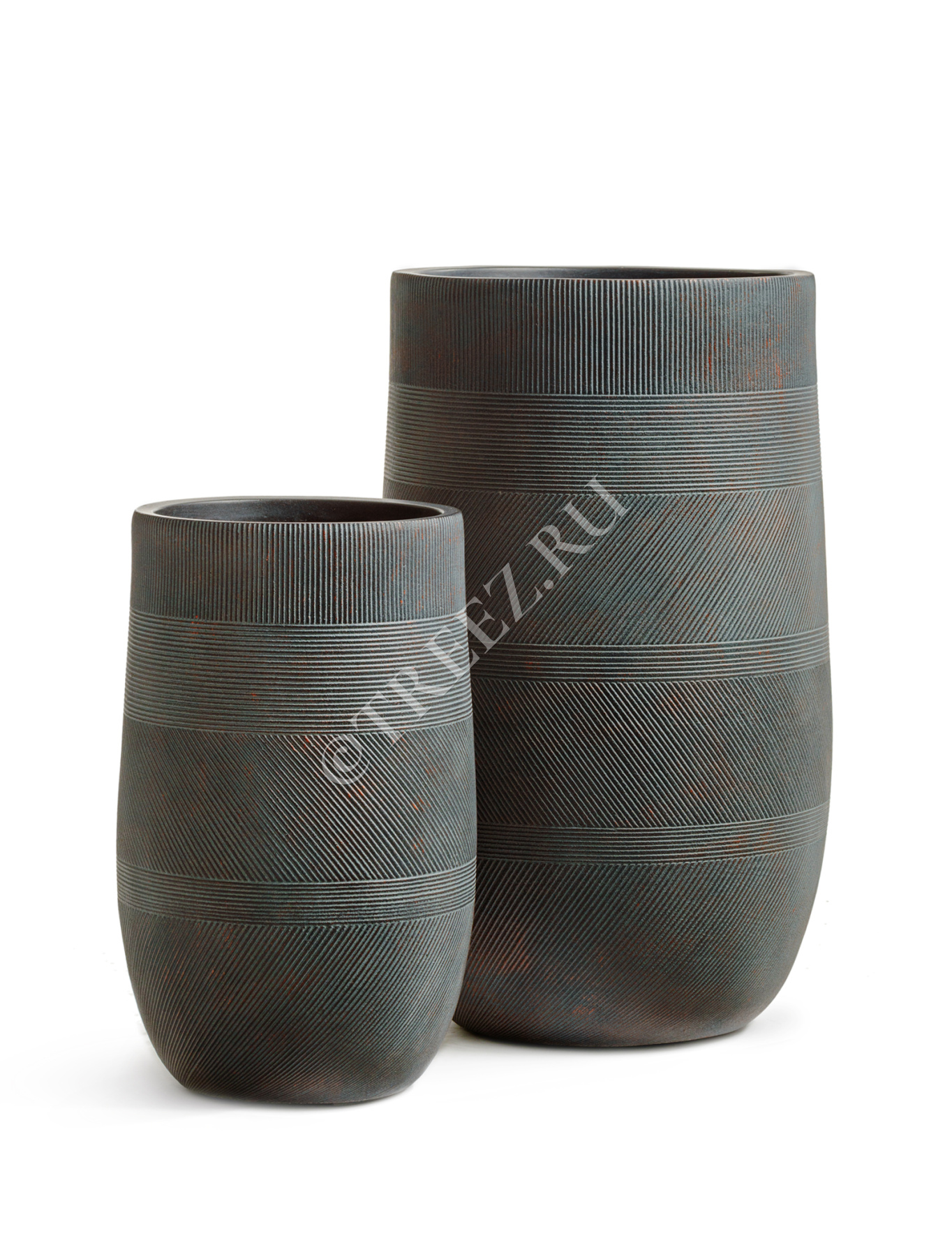 Кашпо TREEZ ERGO - Graphics - Высокая округлая чаша - Окись с медной патиной