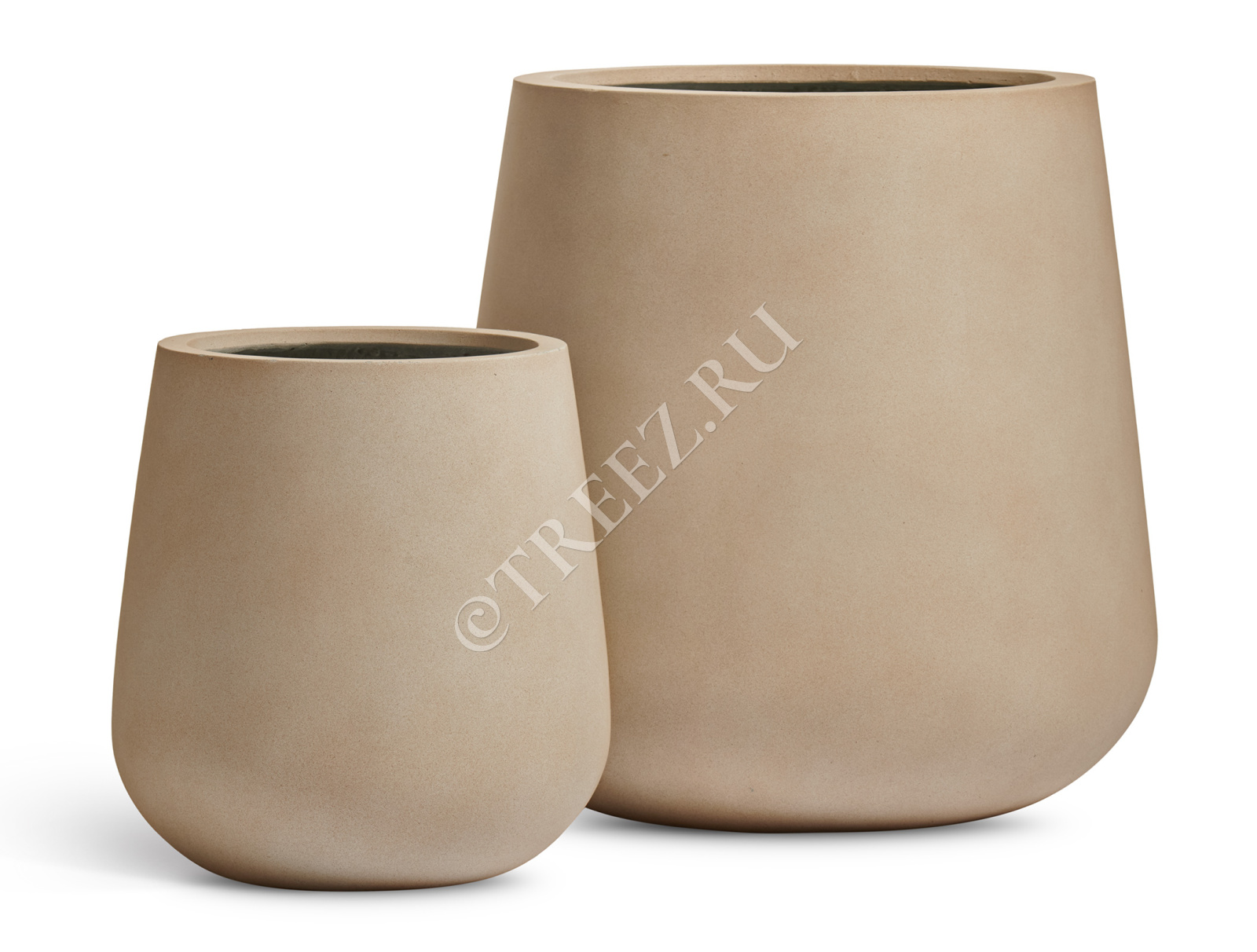 Кашпо TREEZ ERGO - Fine Rock - Высокая округлая чаша - Песок тёплый беж