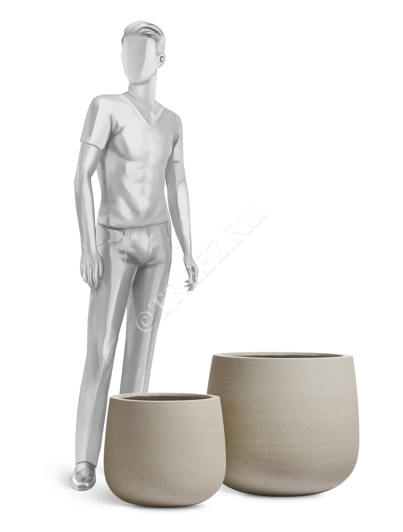 Кашпо TREEZ ERGO - Fine Rock - Высокая округлая чаша - Песок тёплый беж