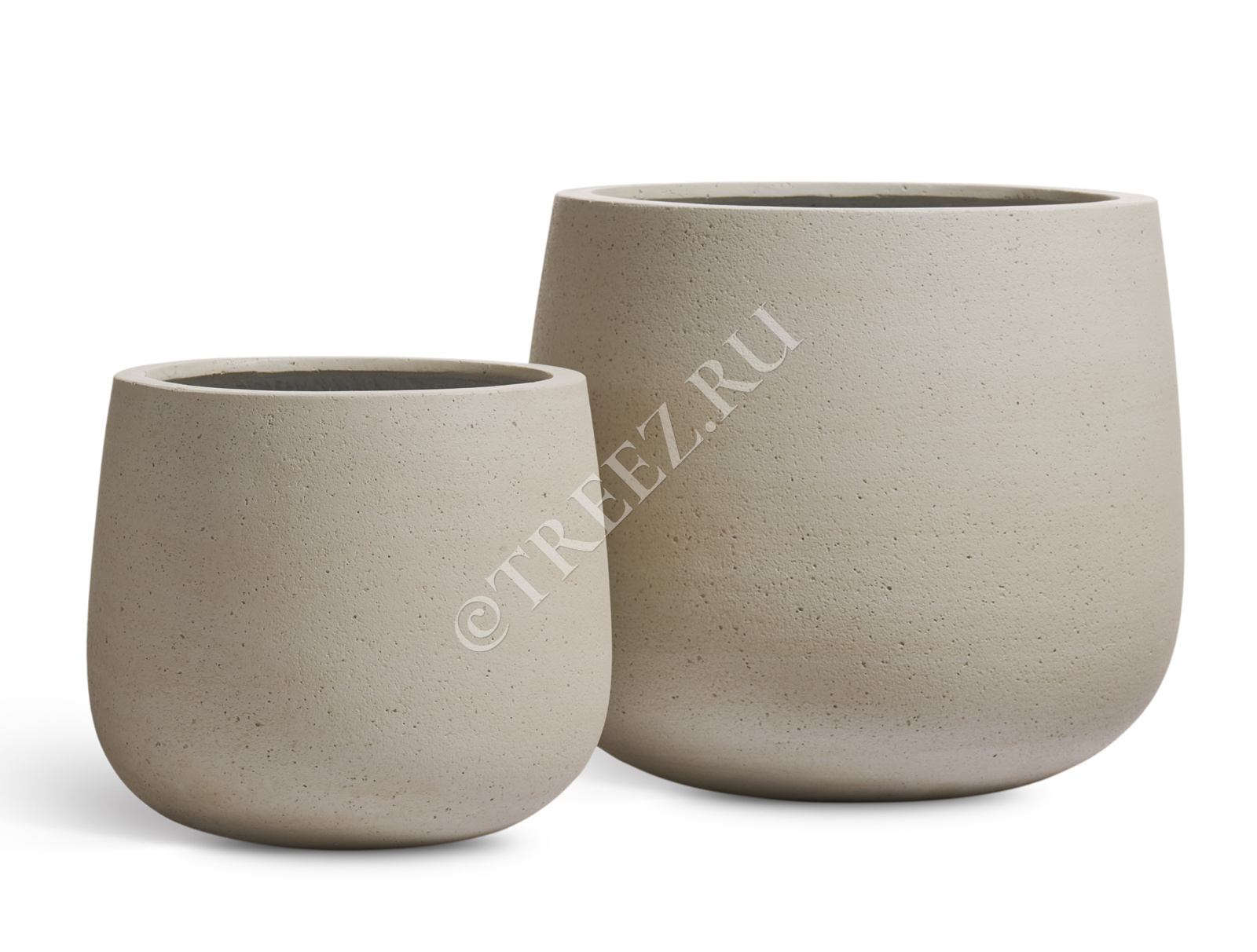 Кашпо TREEZ ERGO - Fine Rock - Высокая округлая чаша - Белый песок