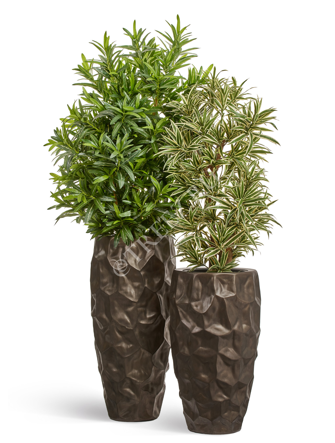 Кашпо TREEZ Effectory - Metal - Высокий округлый конус Design Crumple - Чернёная бронза