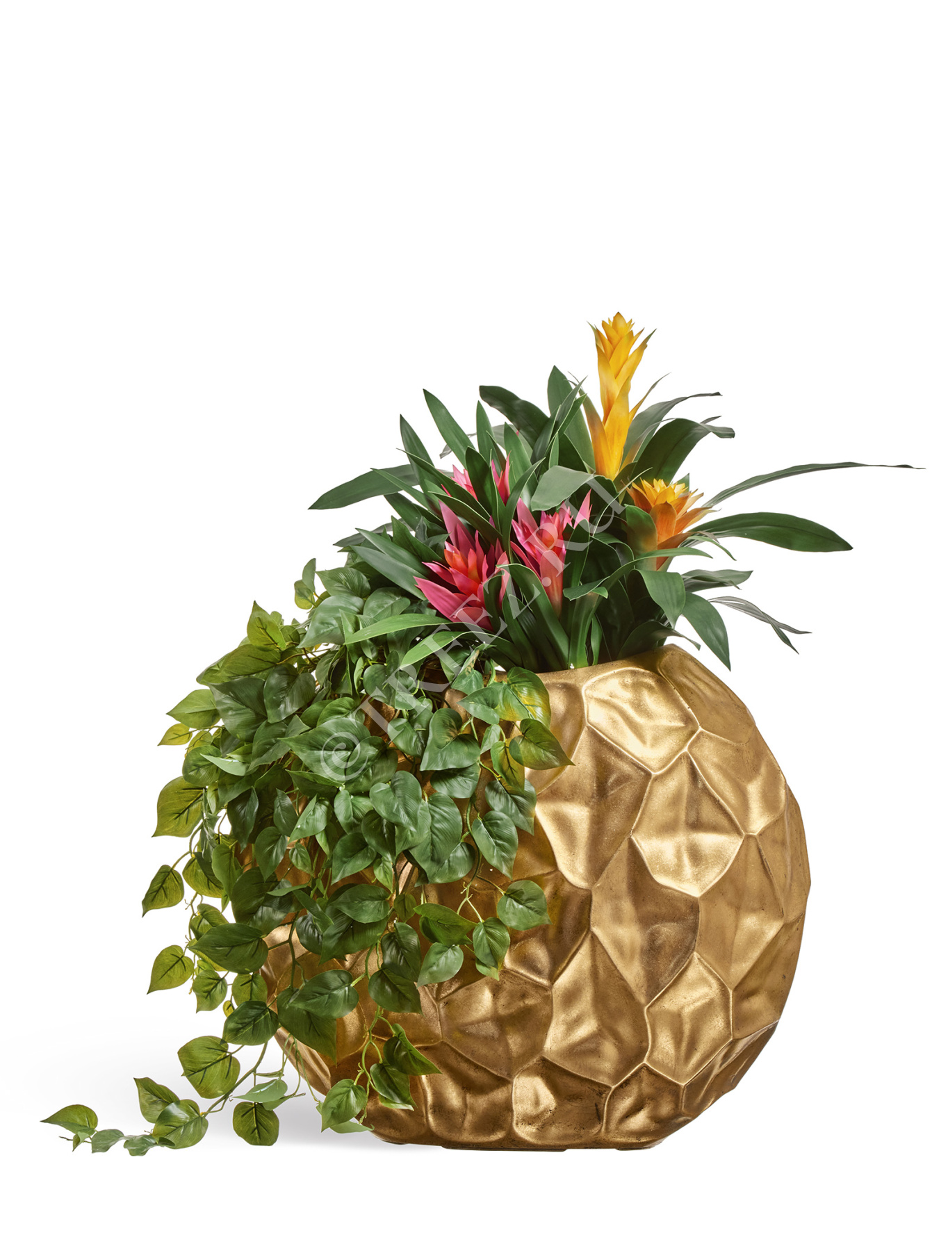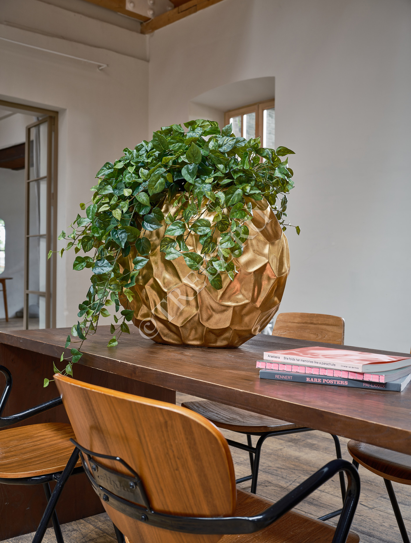 Кашпо TREEZ Effectory - Metal - Округлая чаша - Rough с золотой патиной