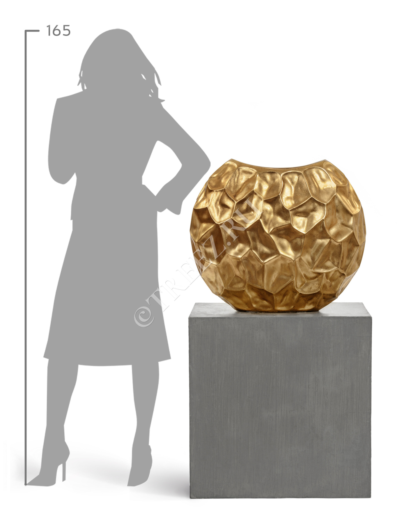 Кашпо TREEZ Effectory - Metal - Плоская сфера Design Crumple - Сусальное золото