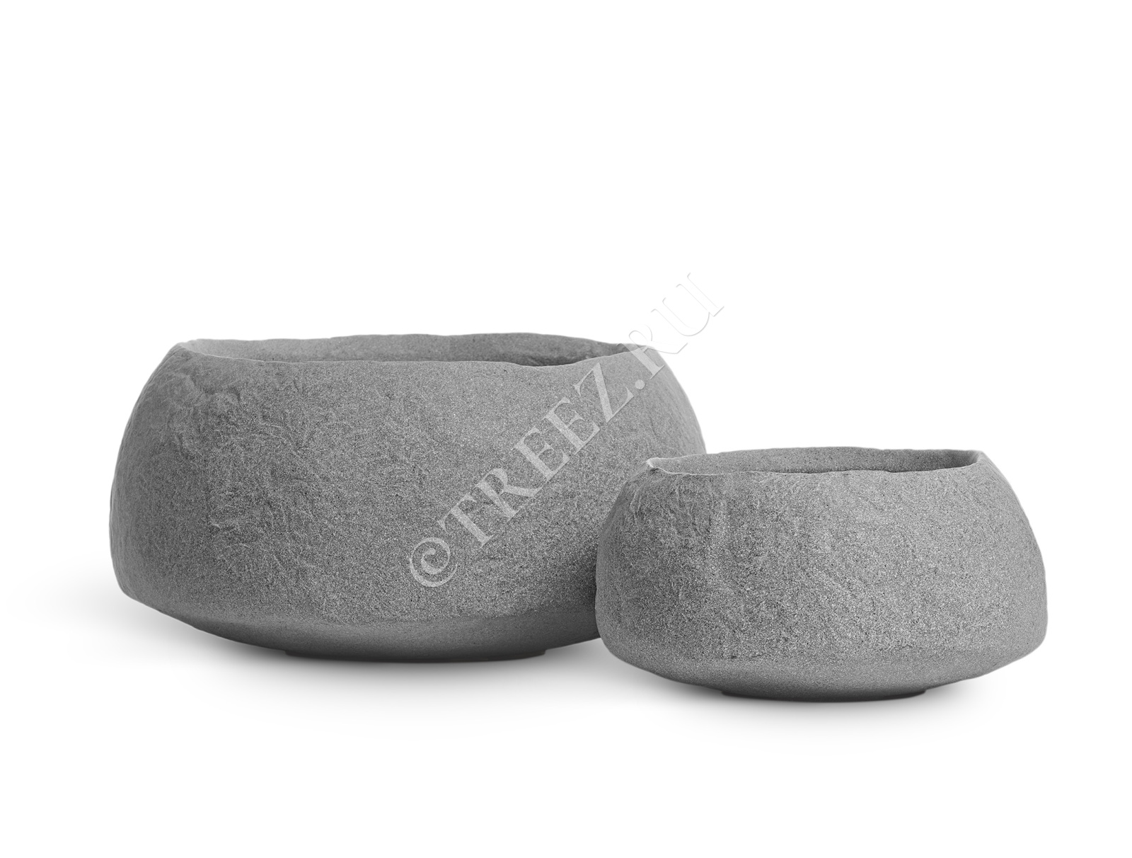Кашпо TREEZ Effectory - Organic - Низкая чаша - Тёмно-серый камень