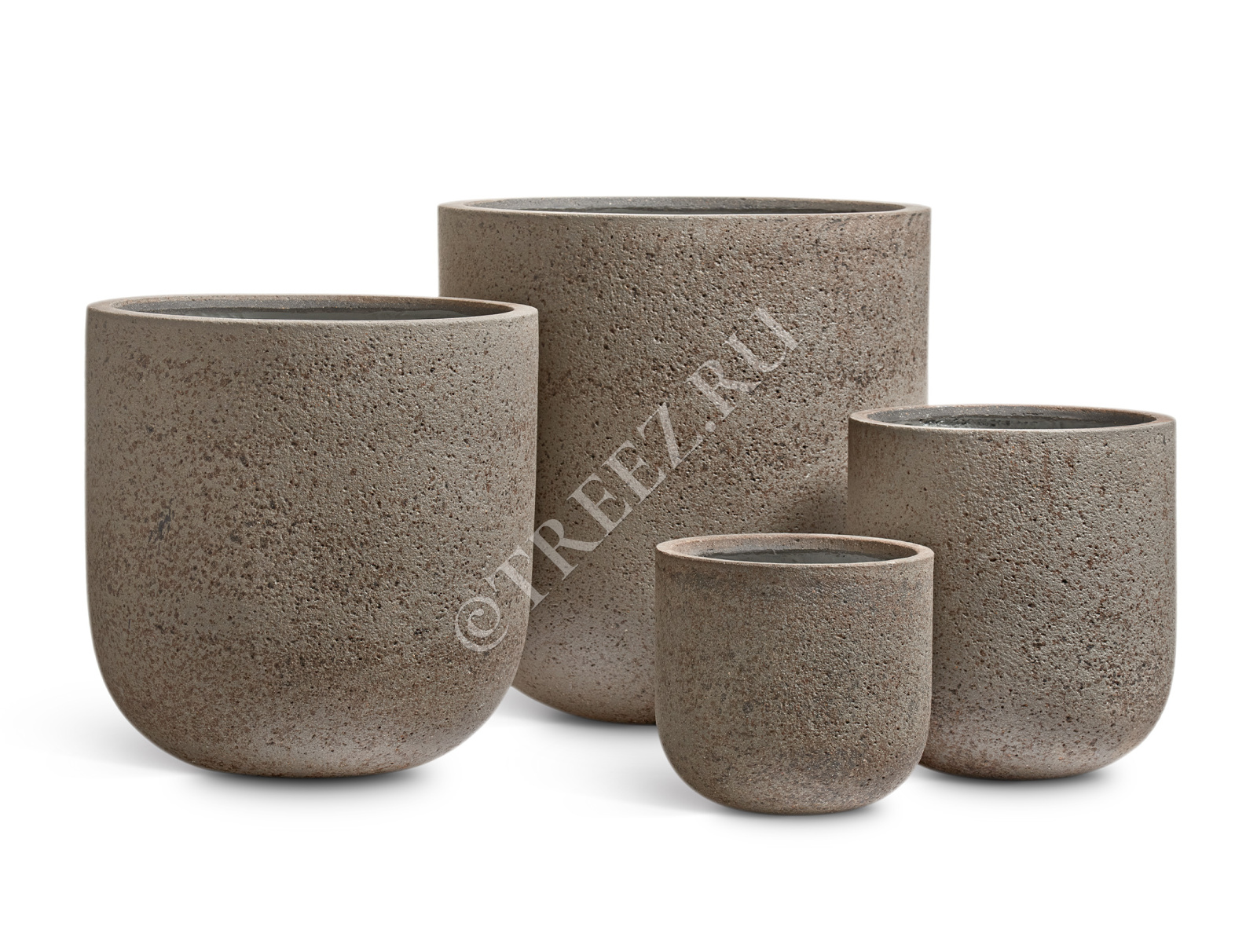Кашпо TREEZ ERGO - Hard Rock - Цилиндрическая Чаша - Песок серый беж