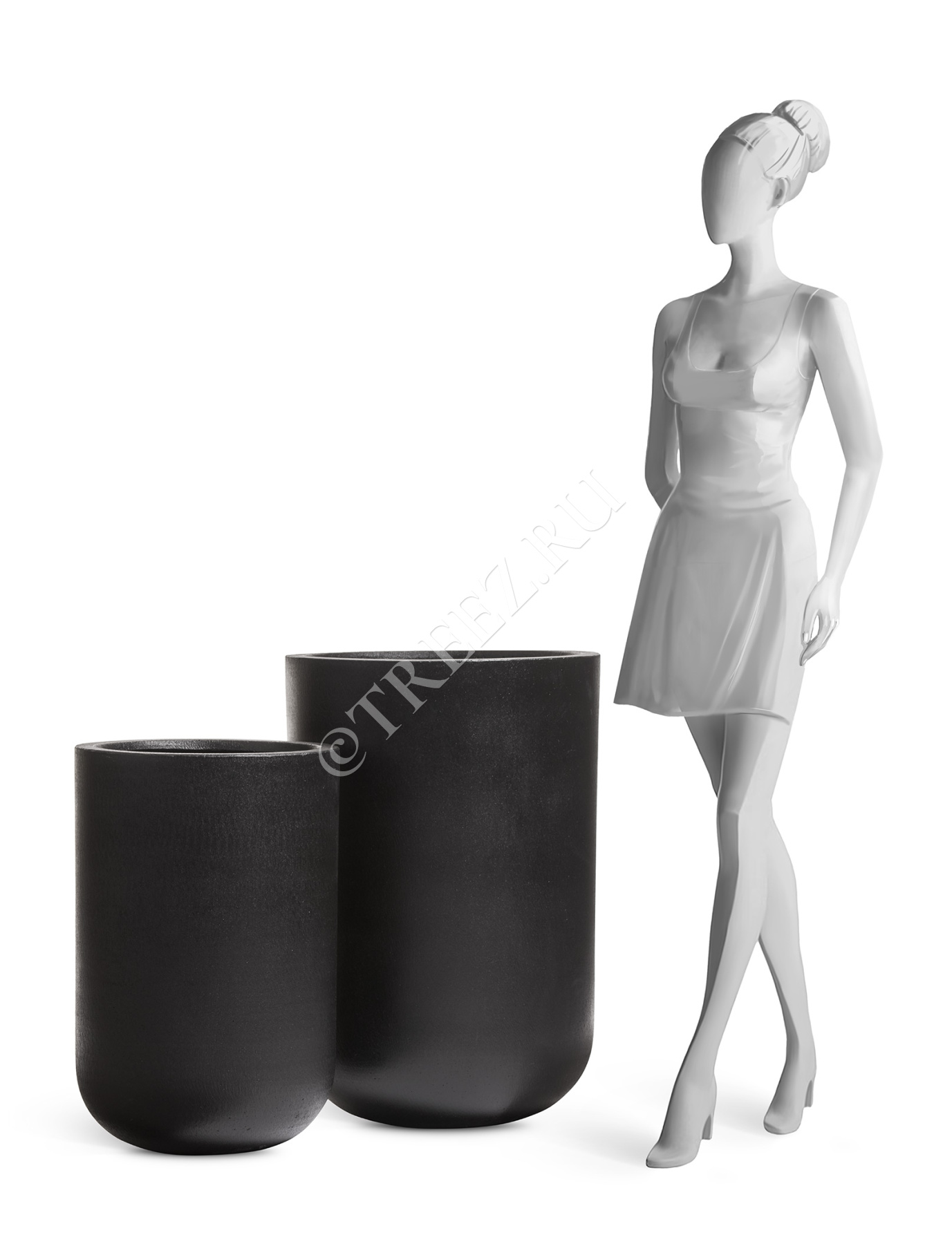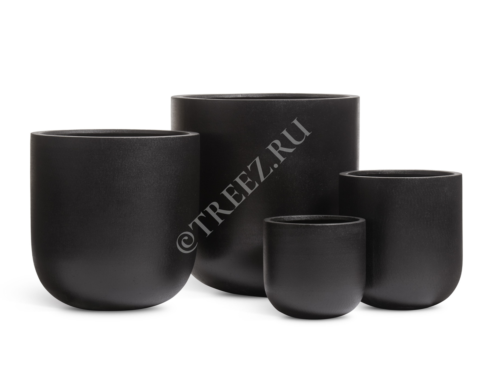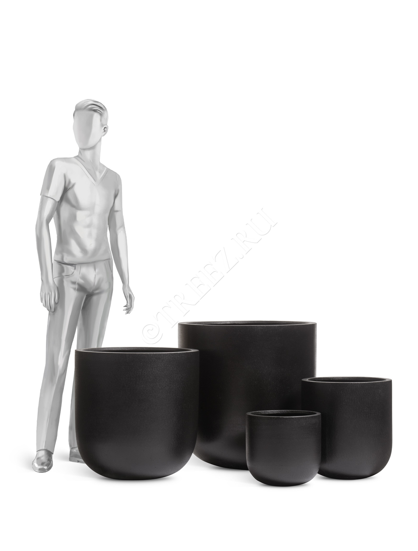 Кашпо TREEZ ERGO - Hard Rock - Высокий округлый цилиндр - Чёрный песок