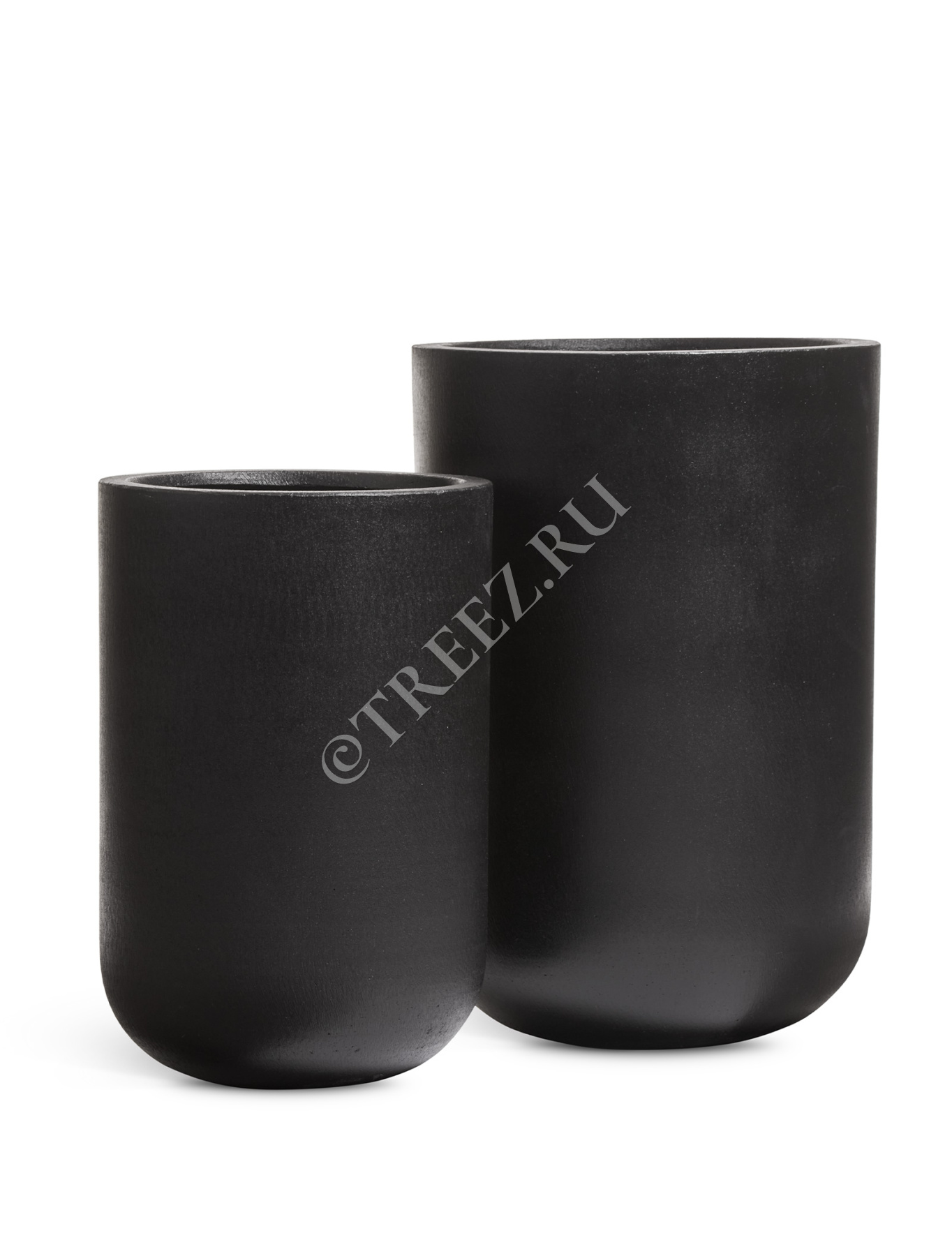 Кашпо TREEZ ERGO - Hard Rock - Высокий округлый цилиндр - Чёрный песок
