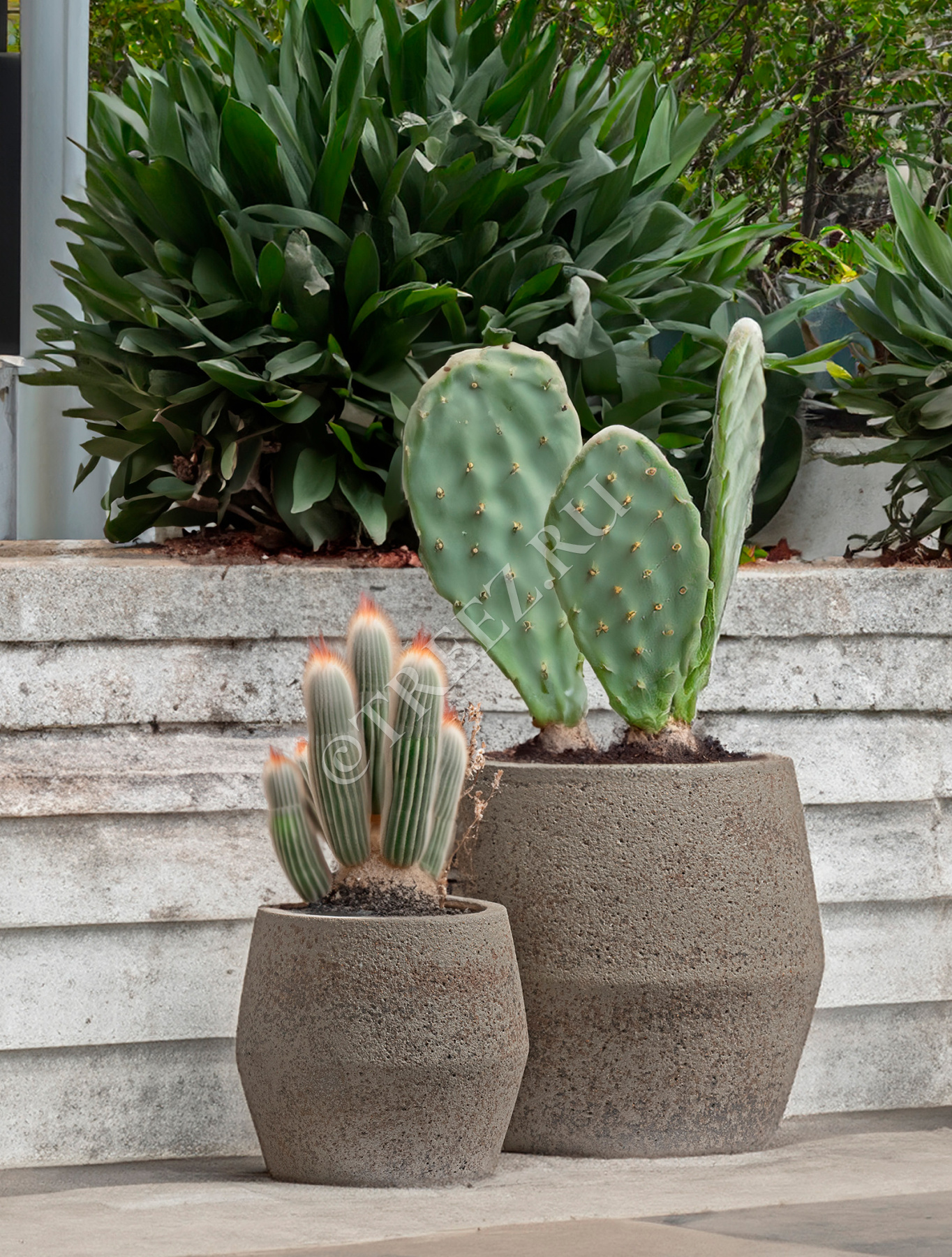 Основной материал, выбранный бельгийскими дизайнерами для этой премиальной, но демократичной серии, позволяющий создать еще более качественные и современные, но доступные по цене кашпо, - фибробетон (композит - смесь настоящей каменной крошки, цемента и полимерной смолы). Фибробетон полностью имитирует фактуру камня, но имеет значительно меньший вес и большую прочность.