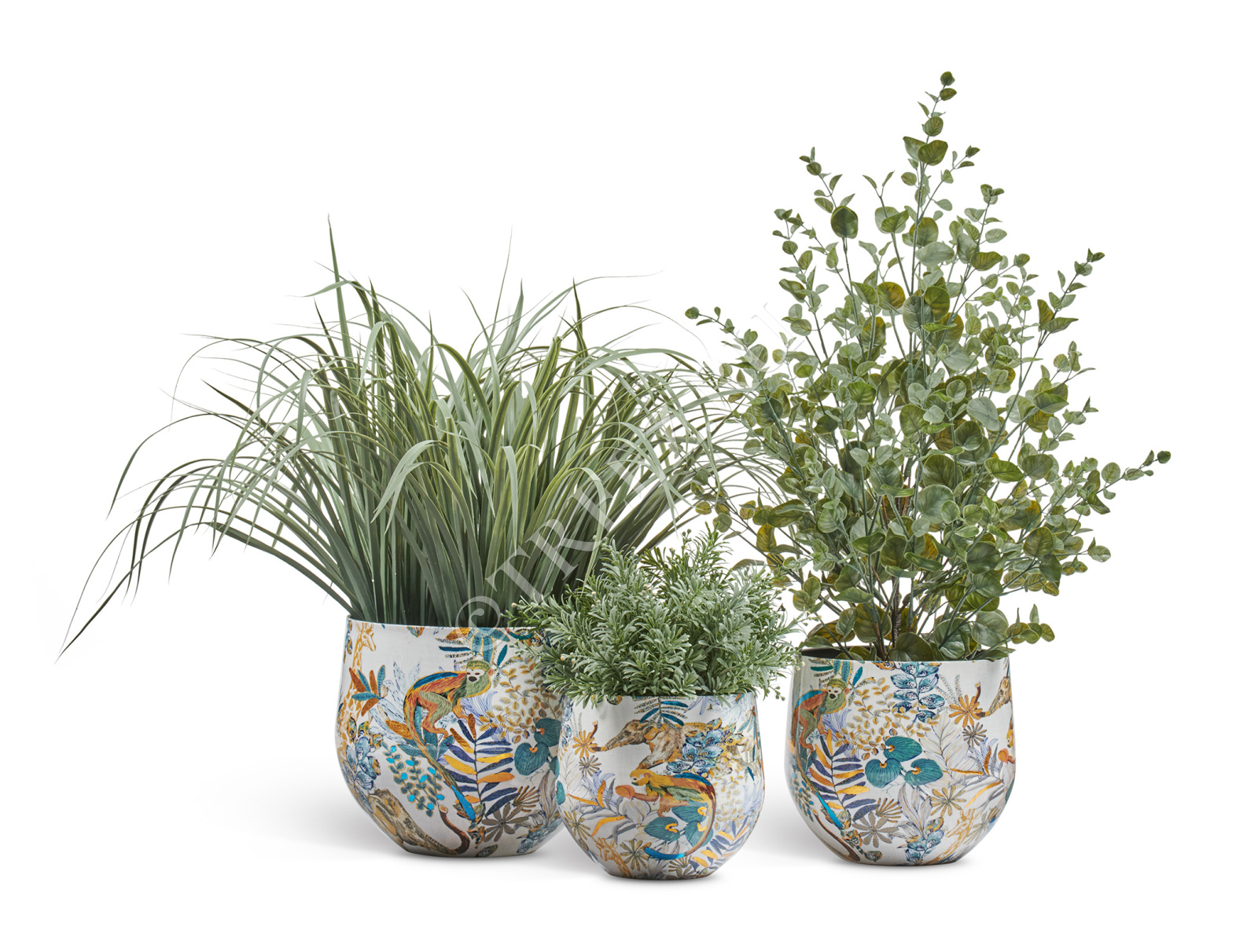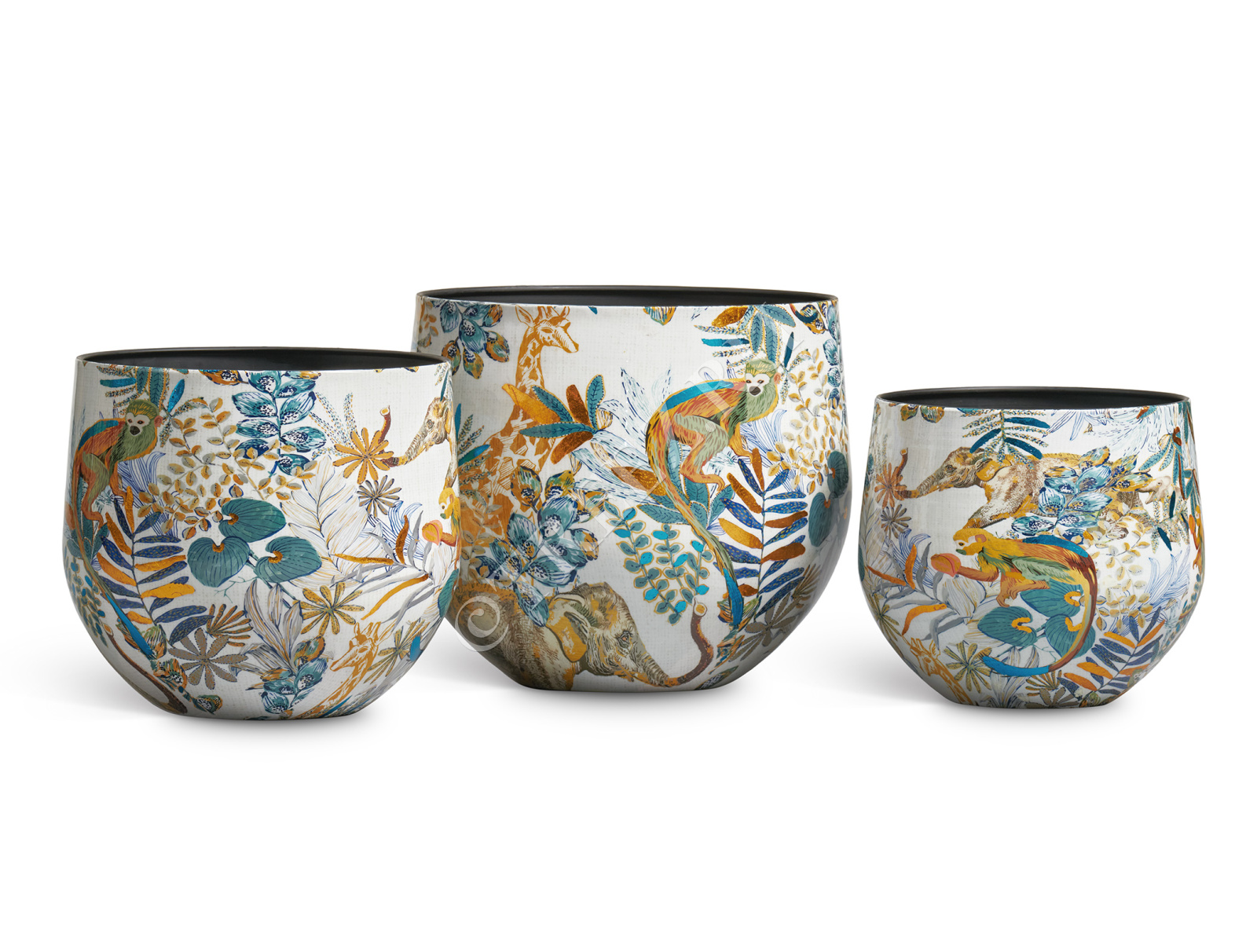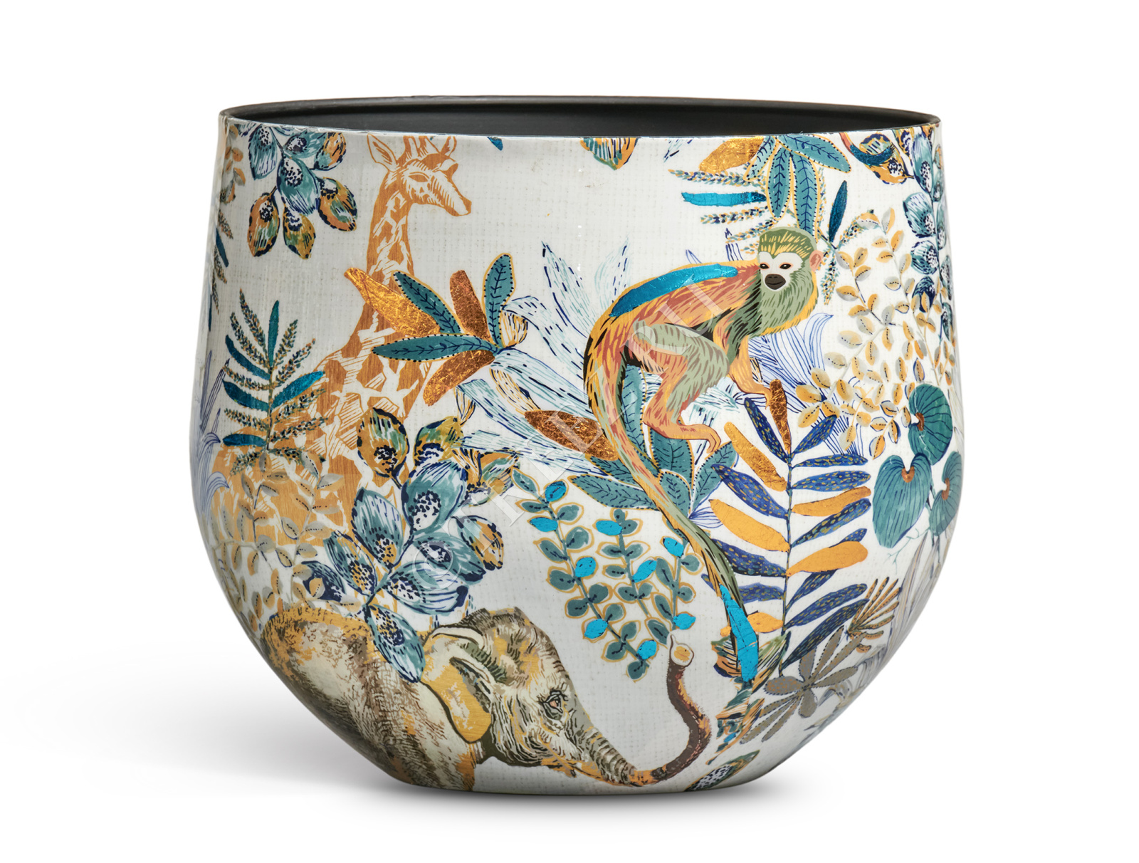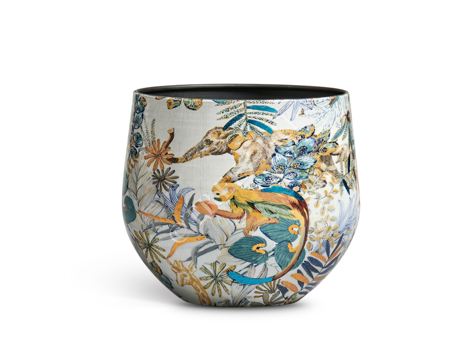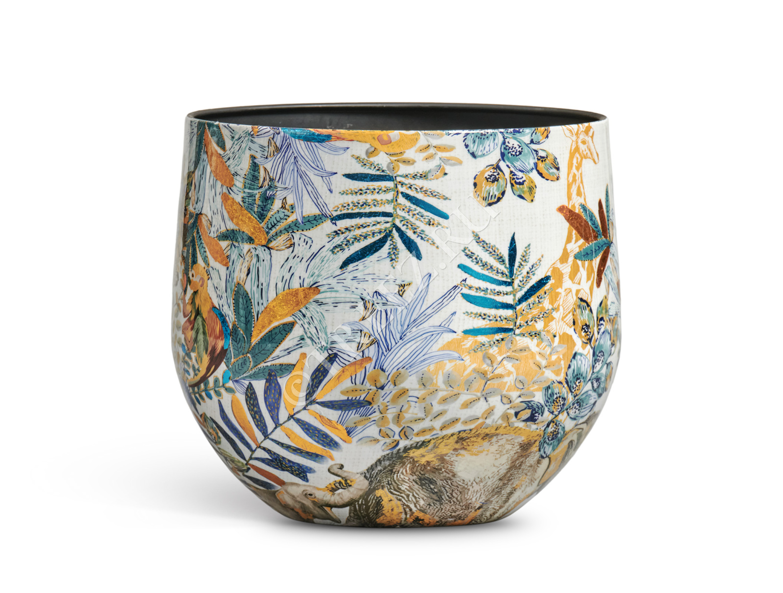 Кашпо коллекции Savage Garden созданы из настоящего металла и покрыты эффектной лаковой эмалью с трендовыми узорами и металлизированными украшениями рисунка.
