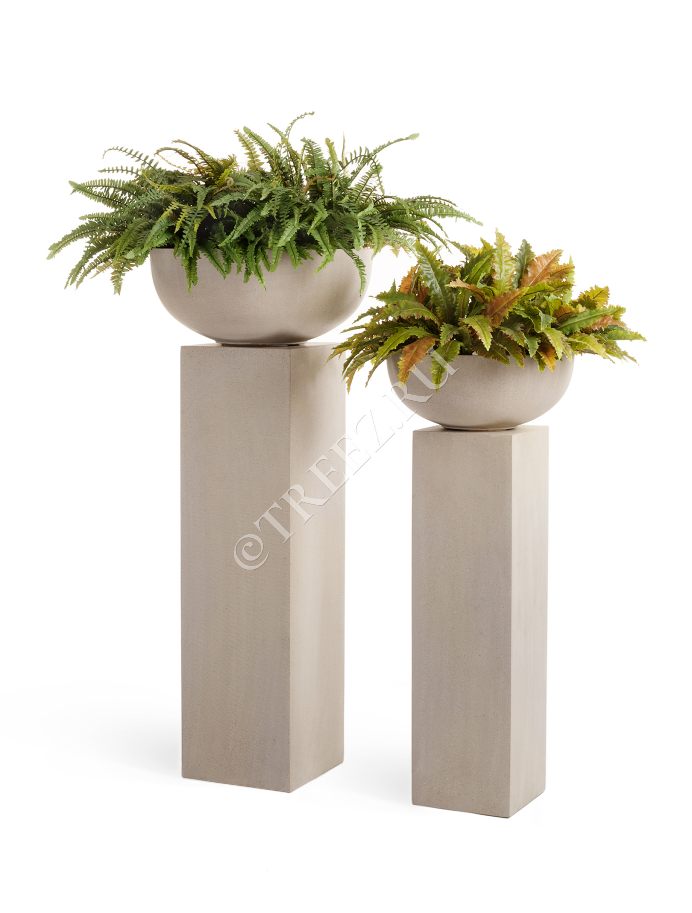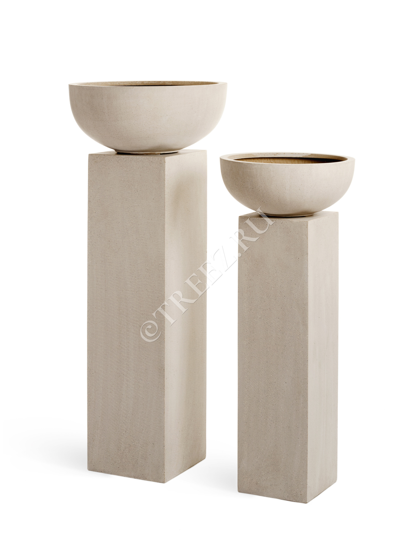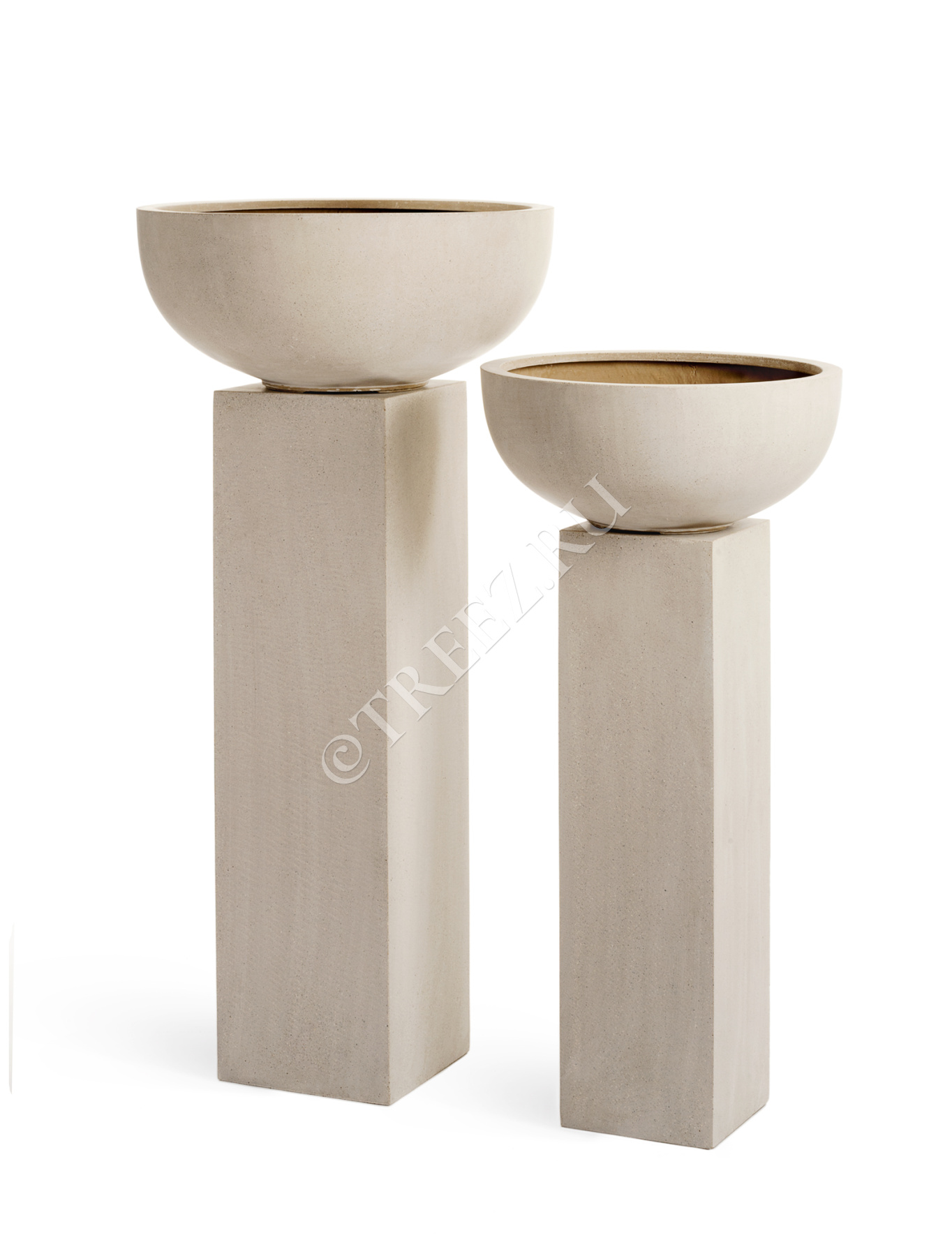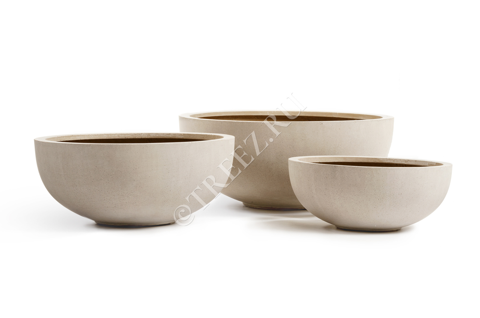 Кашпо TREEZ Effectory - Beton - Низкая сферическая чаша - Белый песок