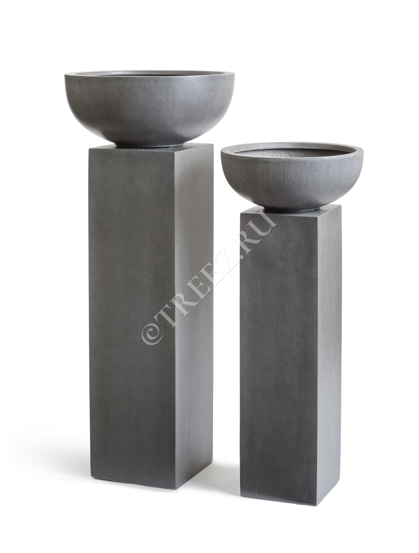 Кашпо TREEZ Effectory - Beton - Низкая сферическая чаша - Тёмно-серый бетон