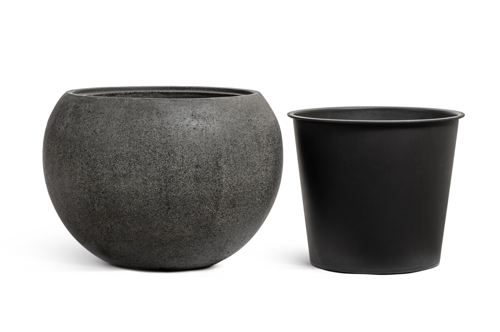 Кашпо TREEZ Effectory - Stone - Большая полусфера - Тёмно-серый камень