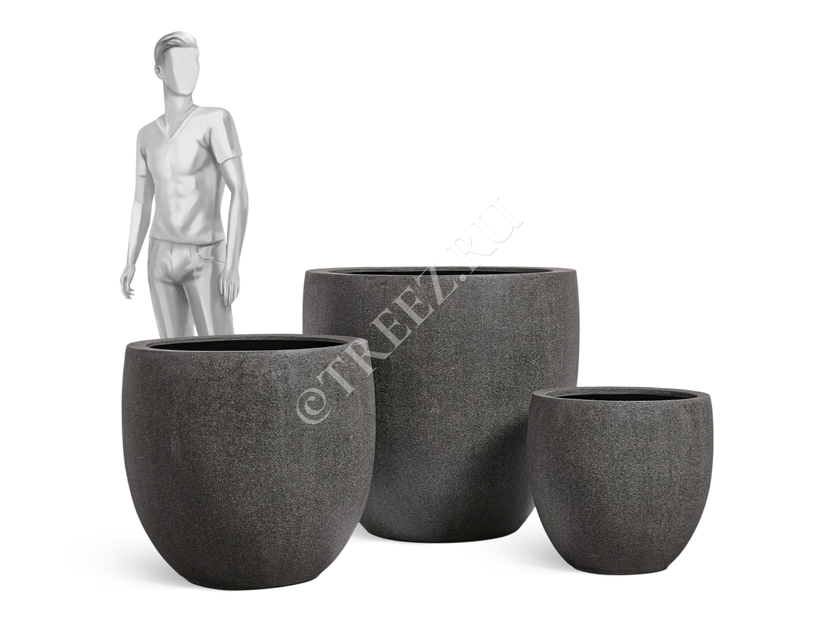 Кашпо TREEZ Effectory - Stone - Большой округлый конус - Тёмно-серый камень
