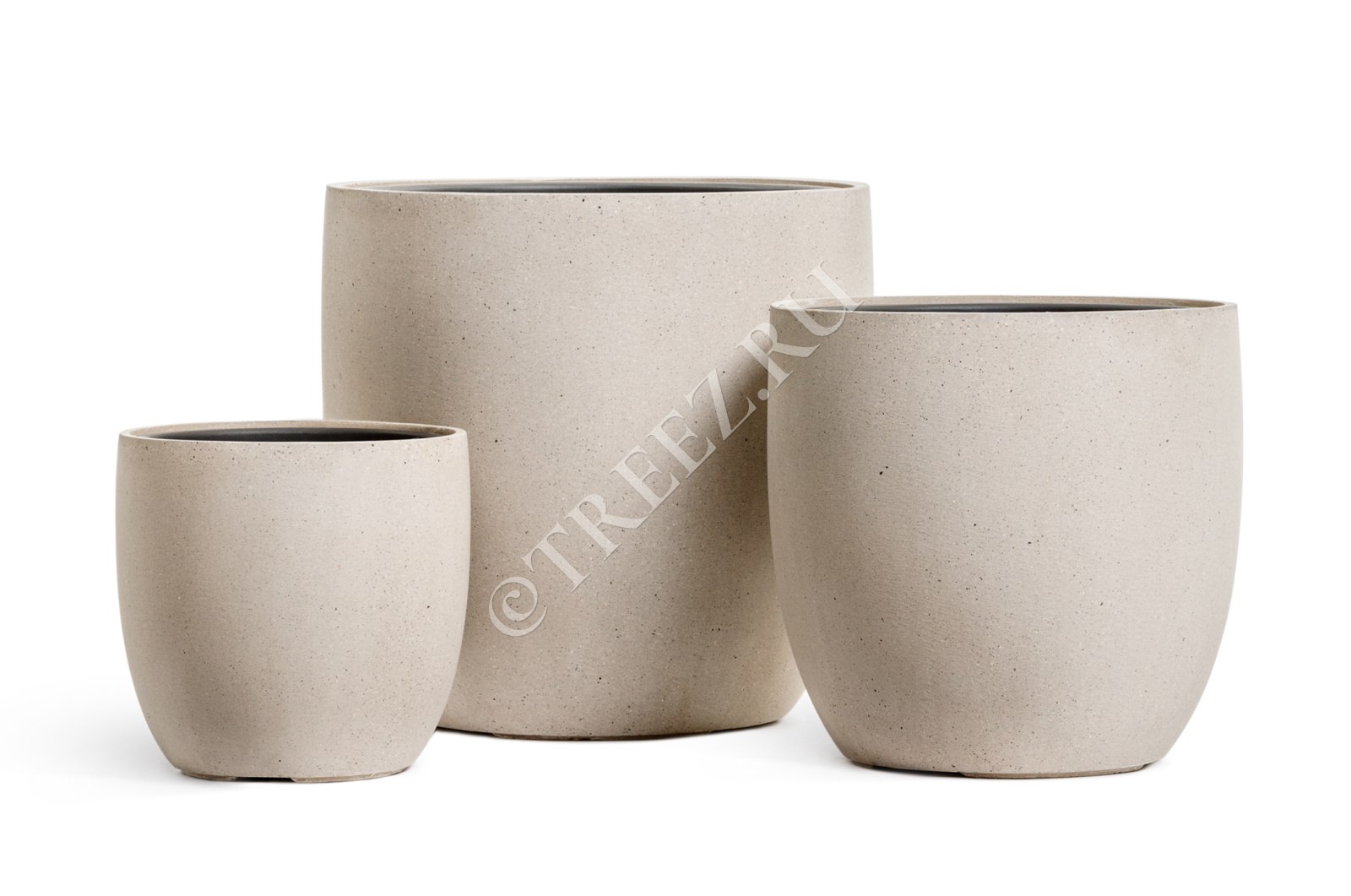 Кашпо TREEZ Effectory - Beton - Большой округлый конус - Белый песок
