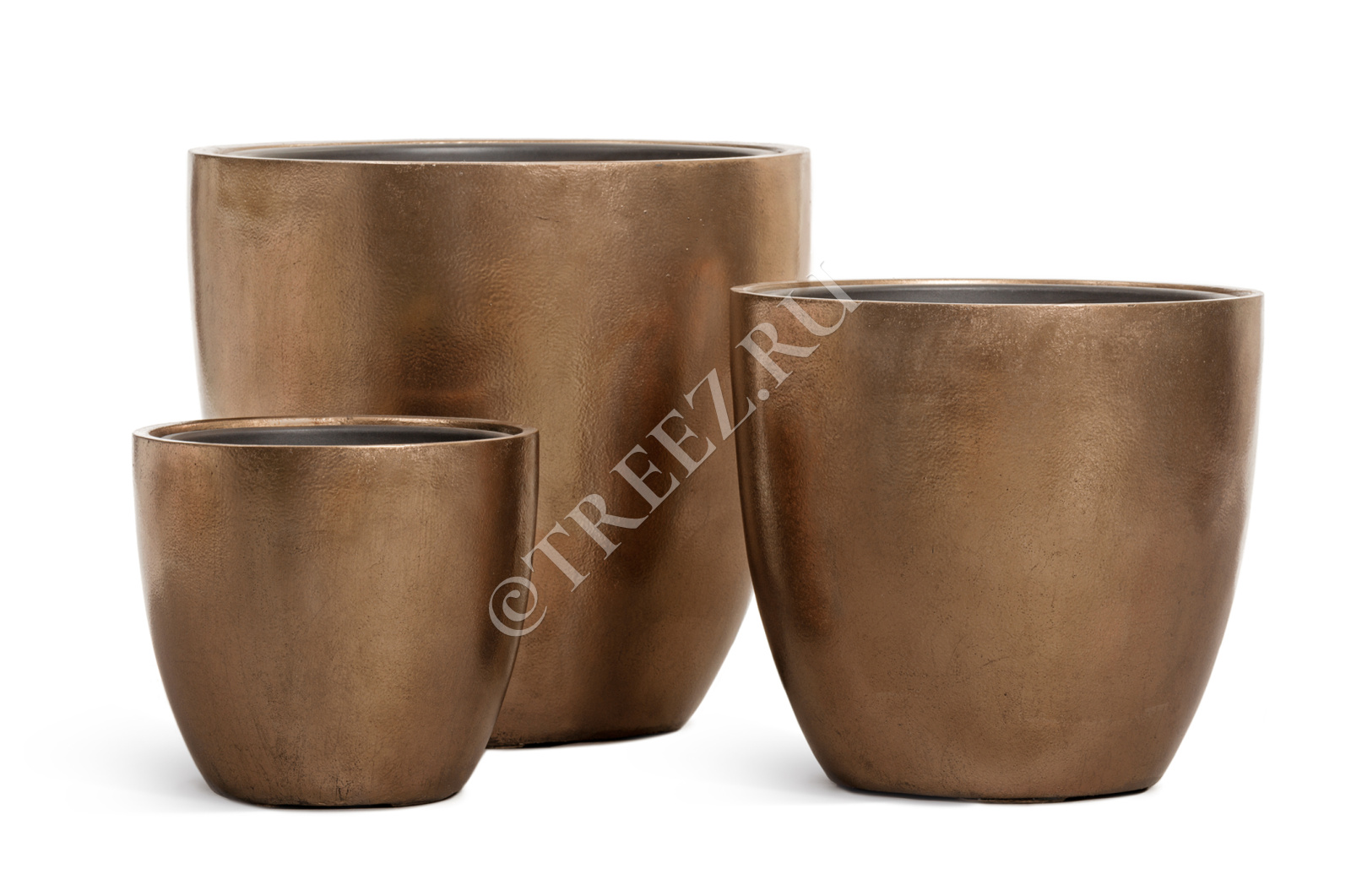 Кашпо TREEZ Effectory - Metal - Округлая чаша - Rough с золотой патиной