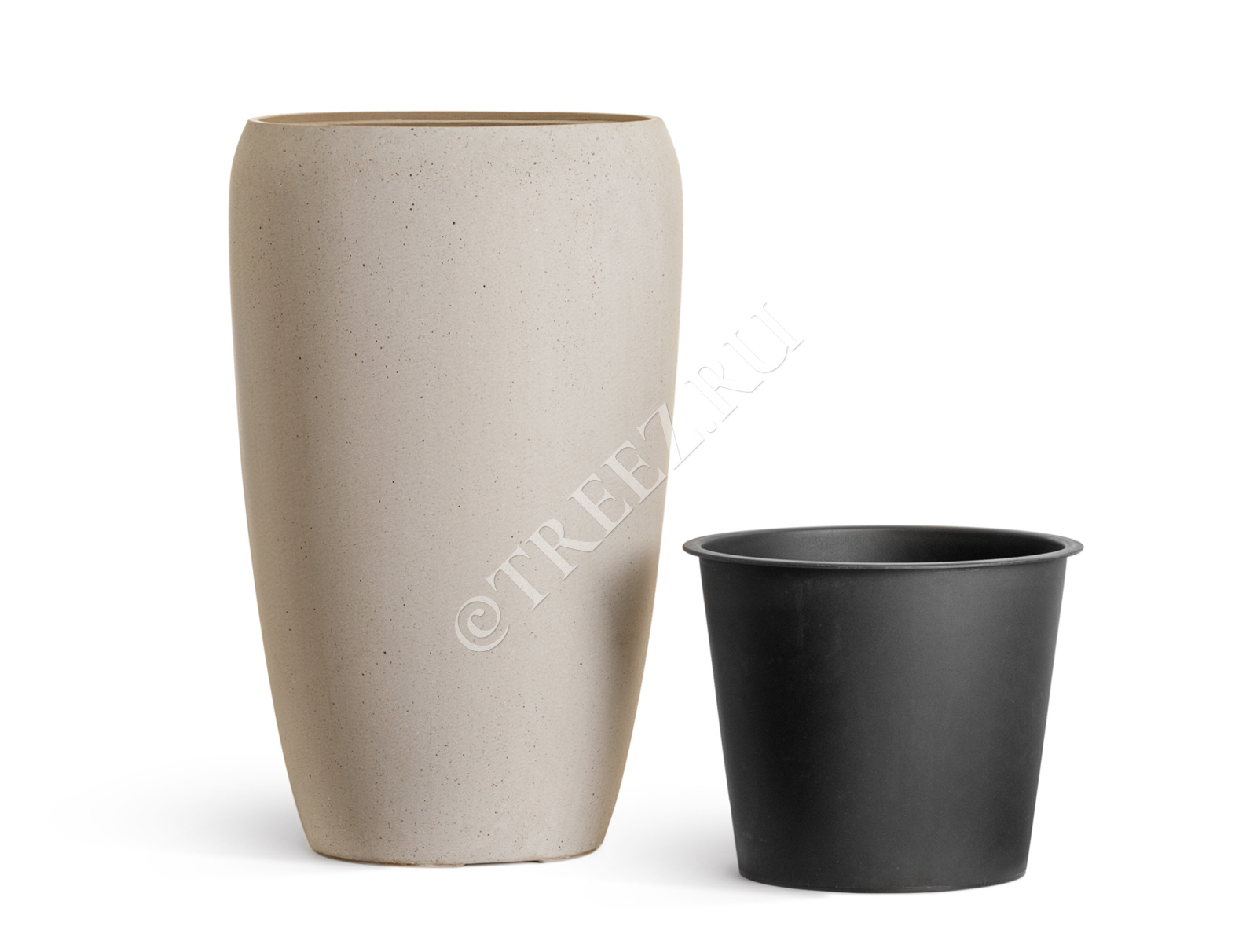 Кашпо TREEZ Effectory - Beton - Высокий округлый конус - Белый песок