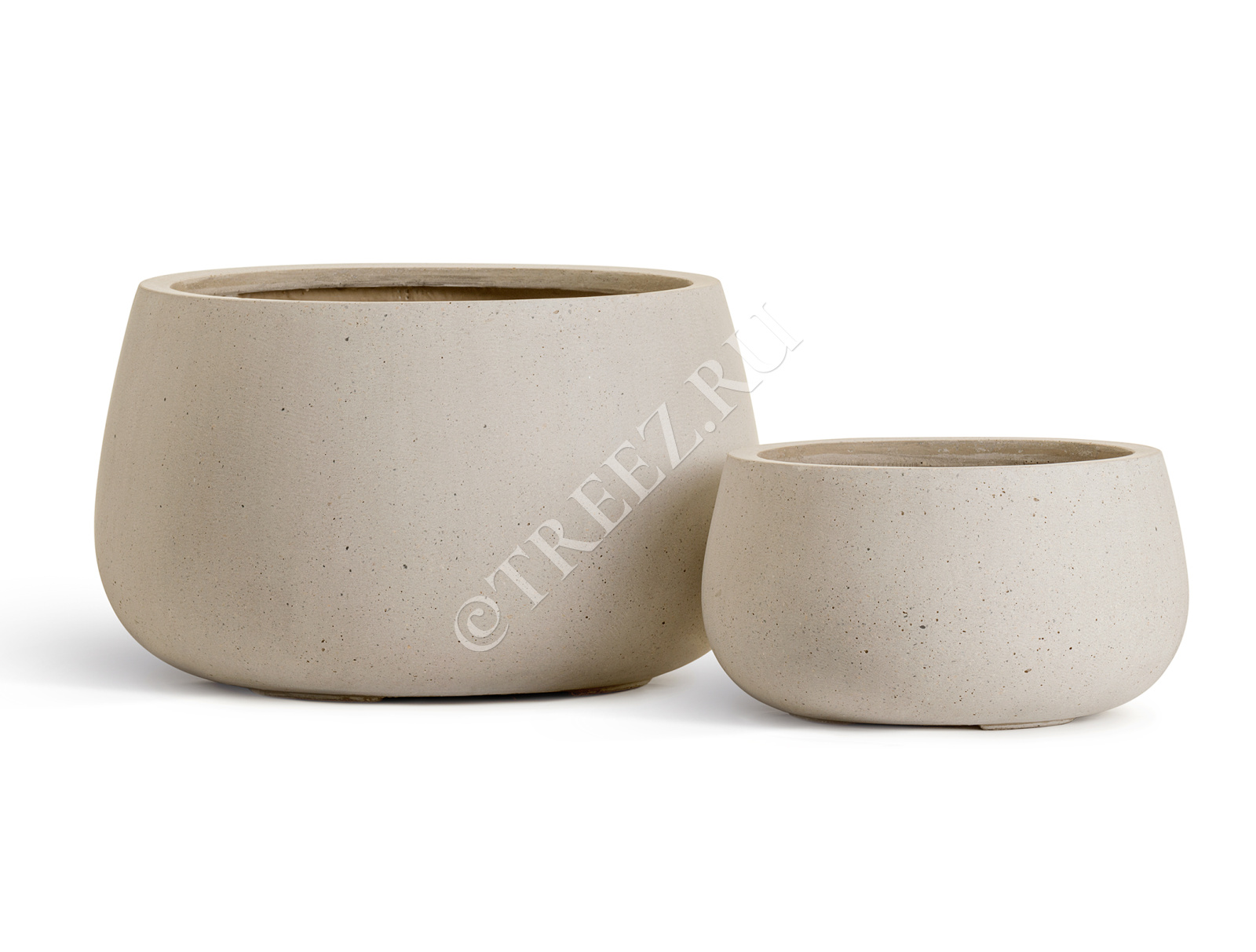 Кашпо TREEZ Effectory - Beton - Низкая Design-чаша - Белый песок