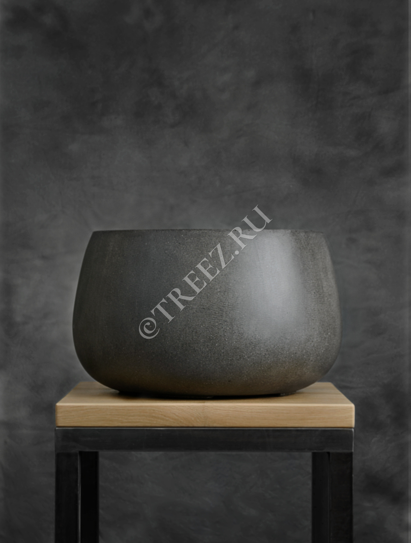 Кашпо TREEZ Effectory - Beton - Низкая Design-чаша - Тёмно-серый бетон
