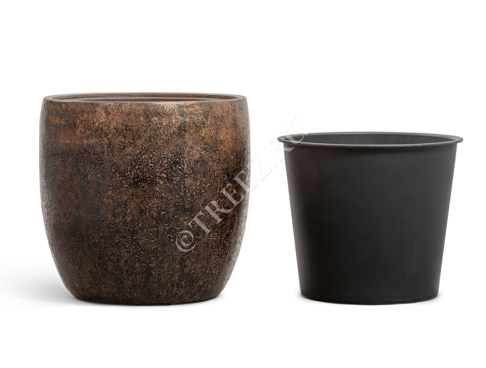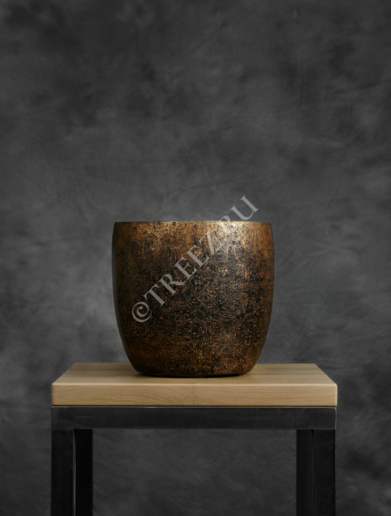 Кашпо TREEZ Effectory - Metal - Высокий округлый конус - Rough с золотой патиной