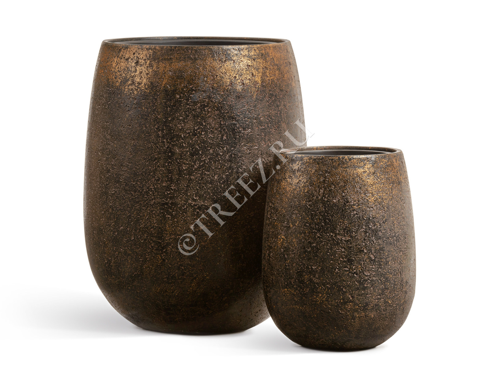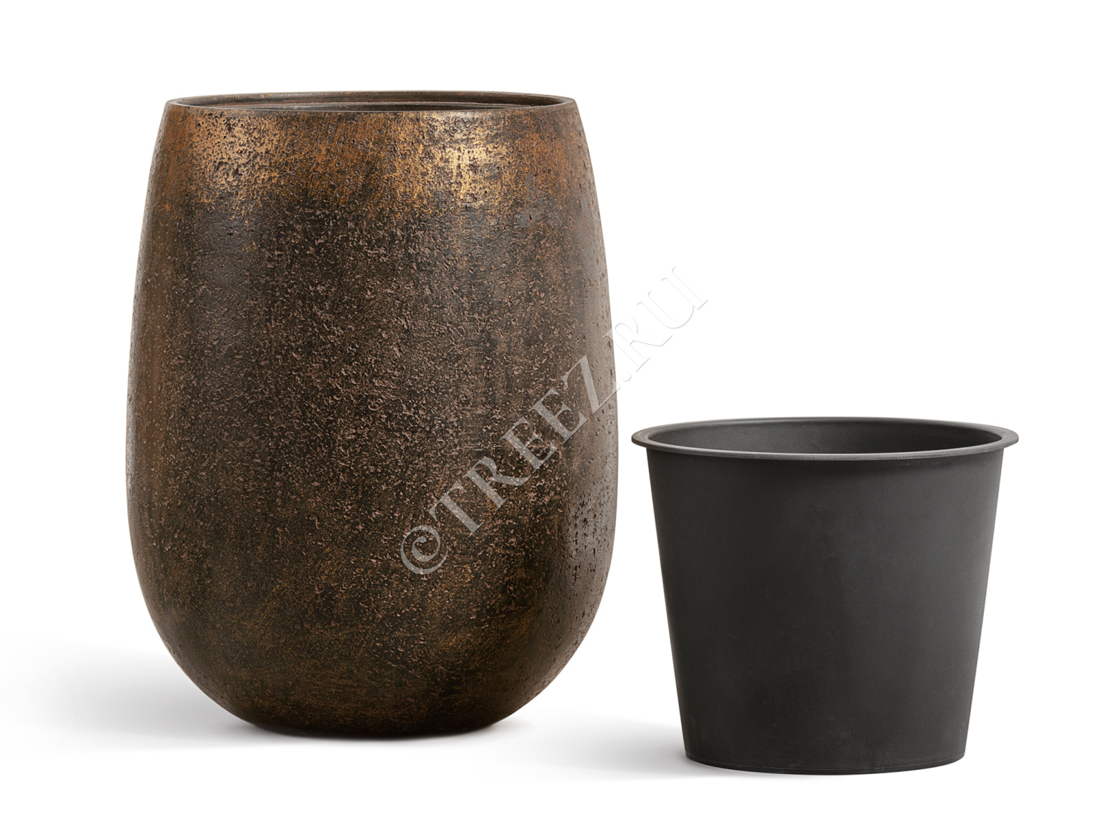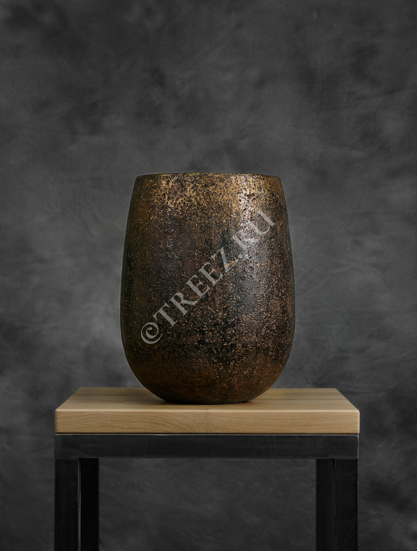 Кашпо TREEZ Effectory - Metal - Высокий округлый конус Design Crumple - Чернёная бронза