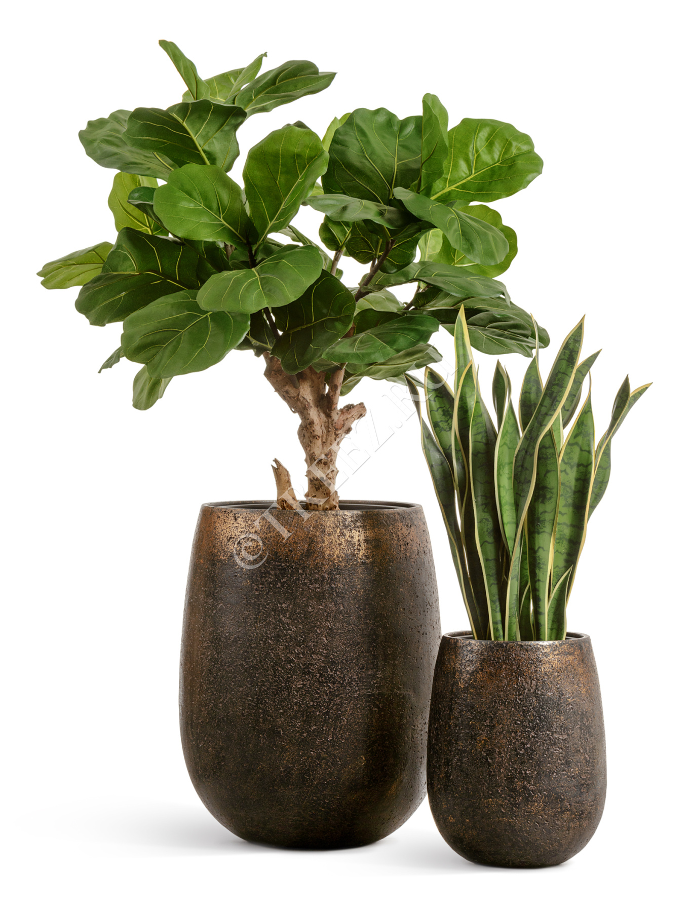 Кашпо TREEZ Effectory - Metal - Округлая чаша - Rough с золотой патиной