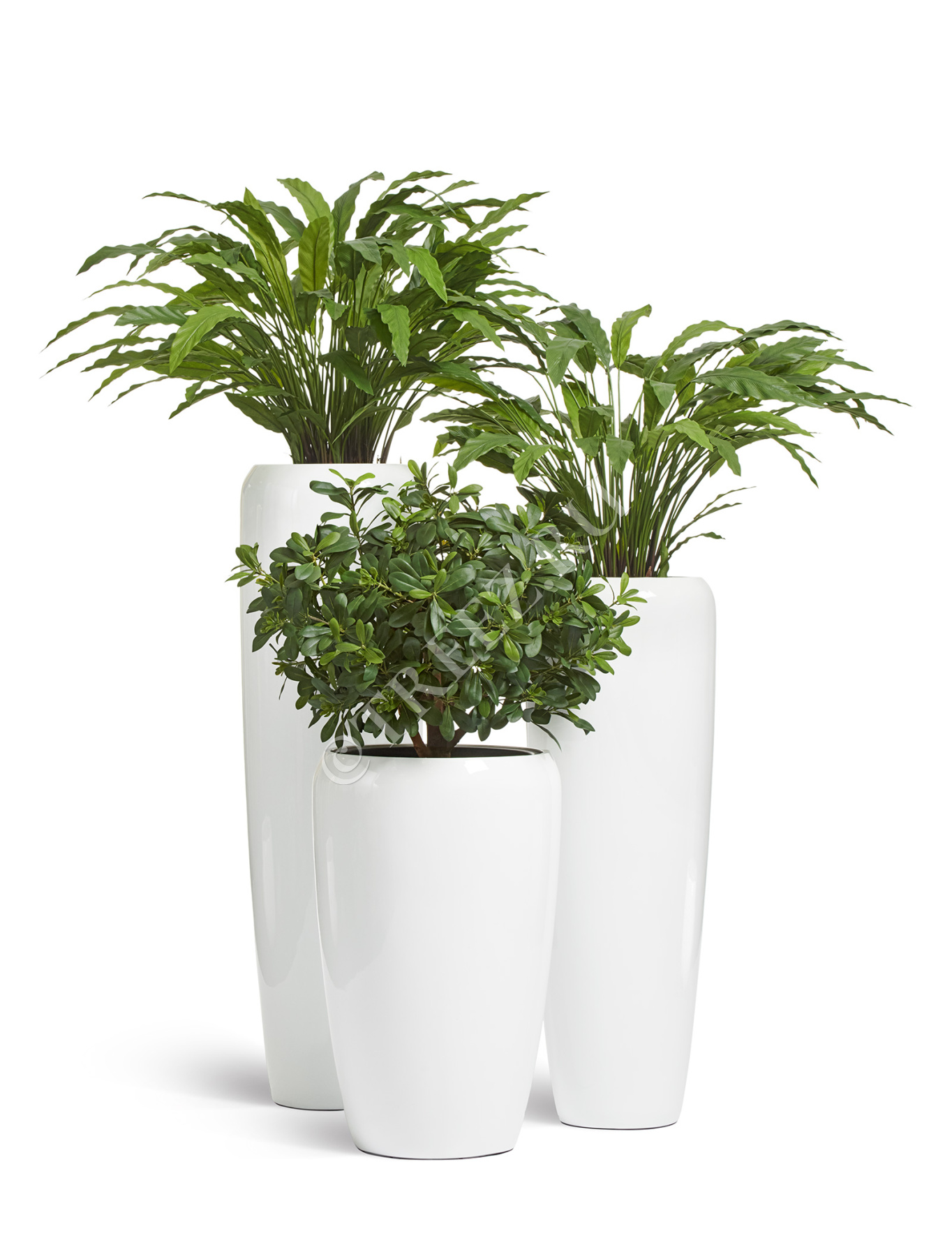 Gloss - практически любое зелёное растение будет выигрышно смотреться в кашпо Effectory Gloss. Белые, идеально глянцевые поверхности кашпо этой серии получаются благодаря особой порошковой технологии окраски, являющейся экологически безопасной и дающей превосходное и долговечное покрытие, а технология и материалы изготовления идентичны изготовлению корпусов лучших яхт, что обеспечивает им лёгкость и отличную прочность.