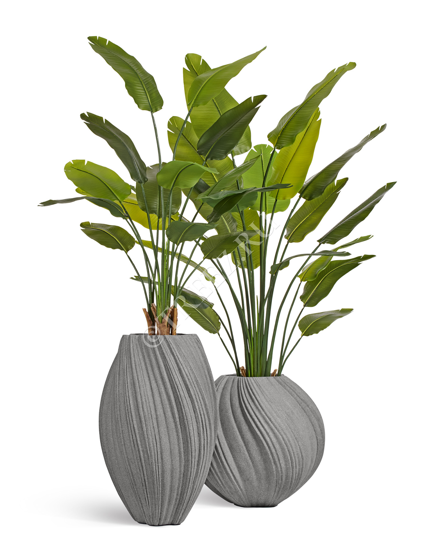 Композицию с эффектными стрелициями с UV-защитой на листьях в стильных кашпо-вазах серии Treez Effectory Dune можно спокойно размещать под прямыми солнечными лучами у панорамных окон. Растения долго останутся такими же ярко зелеными. В современных квартирах с большими окнами - это особенно важно.