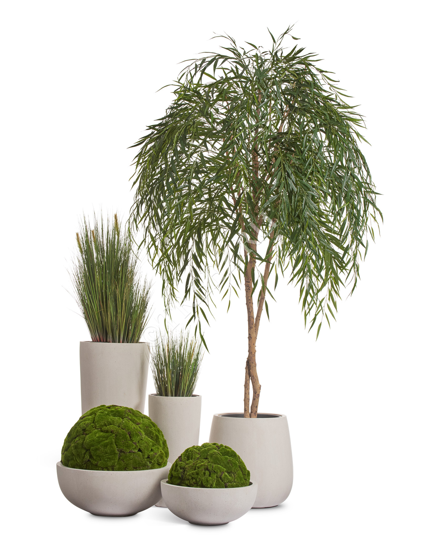 Сет № 43 - Композиция с Ивой и Шарами из Мха в кашпо Treez Effectory Beton Белый песок